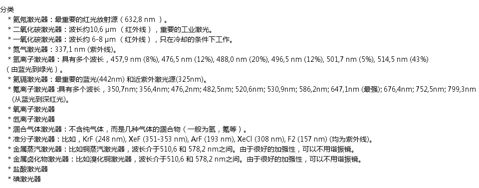 持續(xù)和脈沖激光 持續(xù)激光的頻率范圍通常是非常窄的,也就是說(shuō),他只由一種波長(zhǎng)構(gòu)成。尤其在穩(wěn)定的諧振器中,由于多次的行程,光束是縱向相干的,換句話說(shuō),射出的激光束不僅頻率相同,而且相位一致。這樣的光束有很明顯的干涉現(xiàn)象。 與此相對(duì),脈沖激光束常常有著非常廣的頻率范圍,脈沖越短,頻率就越廣,F(xiàn)在能達(dá)到的最短的脈沖已達(dá)到10^-15-10^-18秒。脈沖如此之短,這么寬的頻率范圍也夠用了。脈沖的頻率取決于諧振器的長(zhǎng)度。諧振器長(zhǎng)達(dá)一米,頻率可達(dá)300MHz。這些脈沖可被光學(xué)開(kāi)關(guān)挑選出并不斷加強(qiáng),可以獲得極大的功率。 通過(guò)激光,我們可以高度的操縱光束(強(qiáng)度,方向,頻率,極性,相位,時(shí)間)。